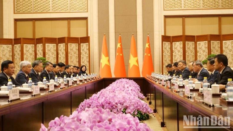 Tổng Bí thư, Chủ tịch nước Tô Lâm nhấn mạnh, chuyến thăm cấp Nhà nước đến Trung Quốc lần này là nhằm kế thừa, tiếp nối sự coi trọng cao độ của Đảng, Nhà nước Việt Nam, các thế hệ lãnh đạo Việt Nam, trong đó có cố Tổng Bí thư Nguyễn Phú Trọng đối với quan hệ Việt Nam-Trung Quốc.