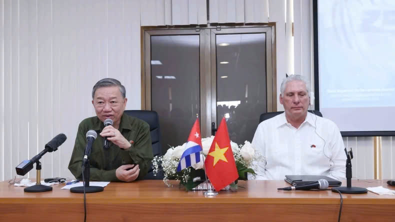 Trong khuôn khổ chuyến thăm cấp Nhà nước tới Cuba, sáng 26/9, Tổng Bí thư, Chủ tịch nước Tô Lâm và đoàn đại biểu cấp cao nước ta đã đến thăm Đặc khu phát triển Mariel (ZEDM) - khu chế xuất thương mại tự do đầu tiên của Cuba. Cùng đi với Đoàn có Bí thư Thứ nhất, Chủ tịch nước Cuba Miguel Diaz Canel Bermudez.