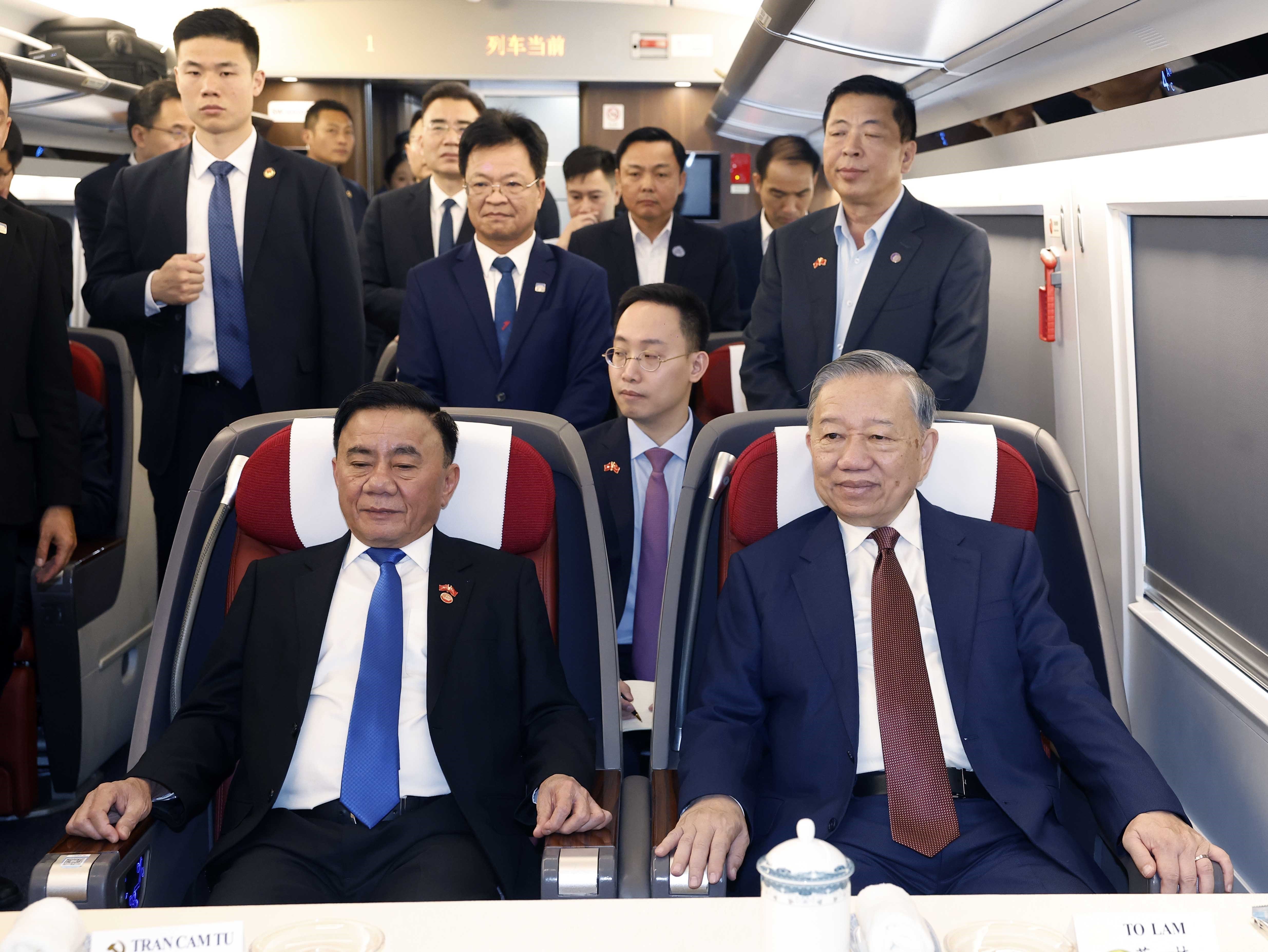 Tiếp tục các hoạt động trong chuyến thăm cấp Nhà nước đến Trung Quốc, sáng 16/4, Tổng Bí thư, Chủ tịch nước Tô Lâm và Phu nhân cùng Đoàn đại biểu cấp cao Việt Nam rời Thủ đô Bắc Kinh đi thăm và làm việc tại thành phố Nam Ninh, tỉnh Quảng Tây bằng tàu đường sắt cao tốc.