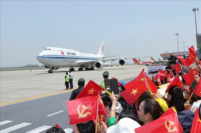 Cùng đón Tổng Bí thư, Chủ tịch nước Tập Cận Bình và Đoàn đại biểu Trung Quốc tại sân bay có các đồng chí: Trần Cẩm Tú, Ủy viên Bộ Chính trị, Thường trực Ban Bí thư; Lê Hoài Trung, Bí thư Trung ương Đảng, Chánh Văn phòng Trung ương Đảng; Trần Sỹ Thanh, Ủy viên Trung ương Đảng, Chủ tịch Ủy ban nhân dân thành phố Hà Nội; Nguyễn Minh Vũ, Ủy viên dự khuyết Trung ương Đảng, Thứ trưởng Thường trực Bộ Ngoại giao; Phạm Thanh Bình, Đại sứ Việt Nam tại Trung Quốc.
