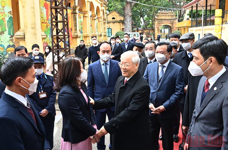 Tổng Bí thư Nguyễn Phú Trọng dâng hương tại Điện Kính Thiên (Khu Di sản Hoàng thành Thăng Long).Tổng Bí thư Nguyễn Phú Trọng với cán bộ, nhân viên Khu Di sản Hoàng thành Thăng Long.Tổng Bí thư Nguyễn Phú Trọng chúc Tết cán bộ, nhân viên Khu Di sản Hoàng thành Thăng Long. Tổng Bí thư Nguyễn Phú Trọng với các đại biểu và tập thể cán bộ, nhân viên Khu Di sản Hoàng thành Thăng Long.