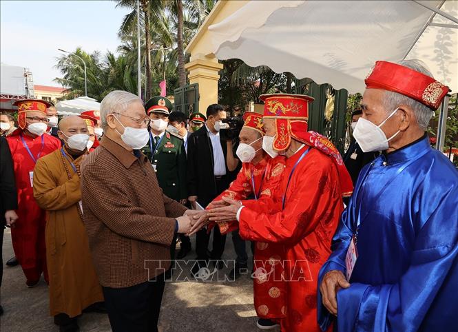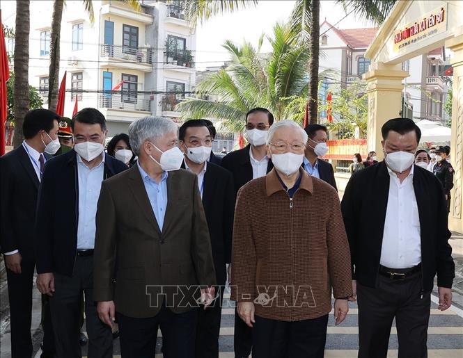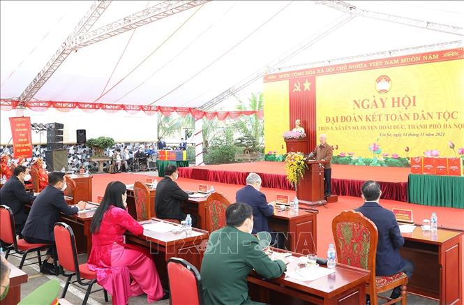 Kỷ niệm 91 năm Ngày thành lập Mặt trận Dân tộc Thống nhất Việt Nam - Ngày truyền thống Mặt trận Tổ quốc Việt Nam (18/11/1930 - 18/11/2021), sáng 14/11/2021, Tổng Bí thư Nguyễn Phú Trọng dự Ngày hội Đại đoàn kết toàn dân tộc tại thôn 5, xã Yên Sở, huyện Hoài Đức, thành phố Hà Nội.