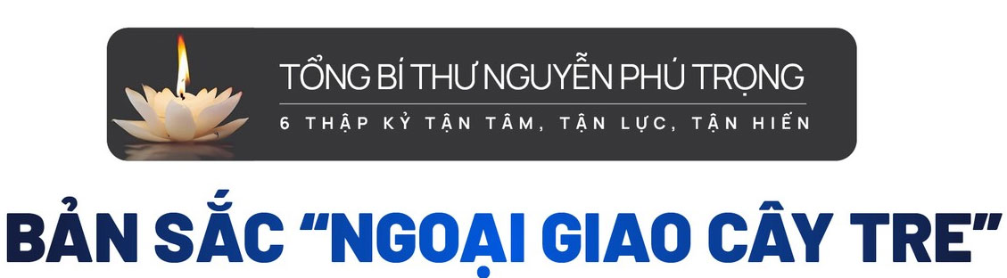 Liên quan đến công tác đối ngoại, trong bài viết "Tổng Bí thư Nguyễn Phú Trọng - Nhà Lãnh đạo lỗi lạc, trọn đời vì nước, vì dân", Chủ tịch nước Tô Lâm khẳng định, dưới sự lãnh đạo của Đảng, trực tiếp là Tổng Bí thư Nguyễn Phú Trọng, bản sắc “Ngoại giao cây tre” được phát huy mạnh mẽ, tạo những bước ngoặt lịch sử, thay đổi về chất trong quan hệ giữa Việt Nam với các đối tác lớn.