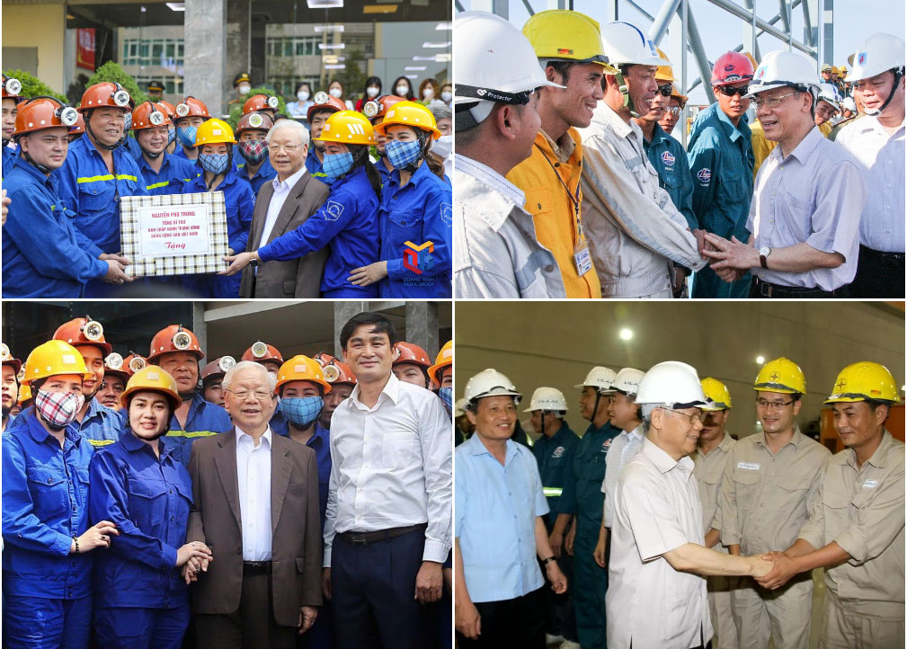 | Tổng Bí thư Nguyễn Phú Trọng gặp gỡ, động viên công nhân, người lao động. |