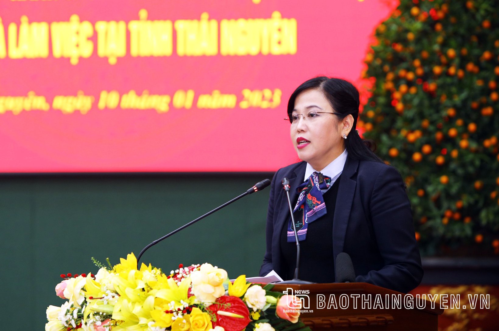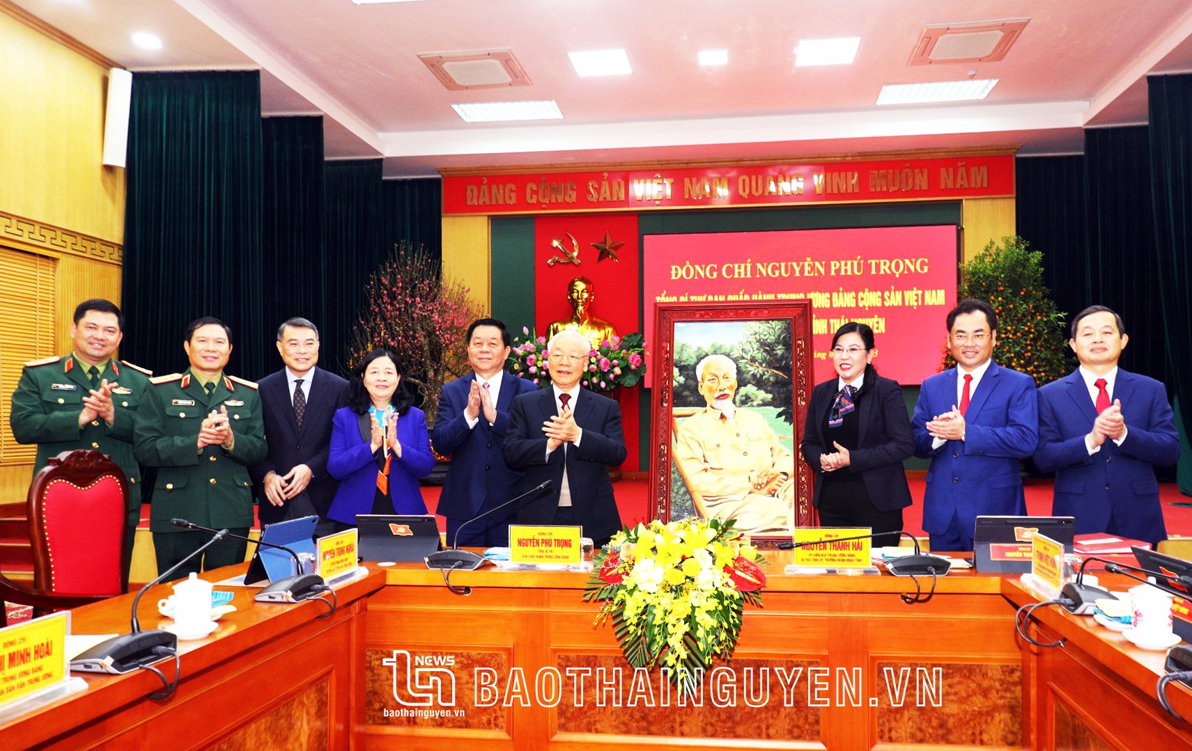 Thay mặt lãnh đạo Đảng, Nhà nước, Tổng Bí thư Nguyễn Phú Trọng nhiệt liệt hoan nghênh, chúc mừng và biểu dương sự cố gắng, nỗ lực phấn đấu và những kết quả, thành tựu của tỉnh Thái Nguyên, đặc biệt là trong năm 2022.