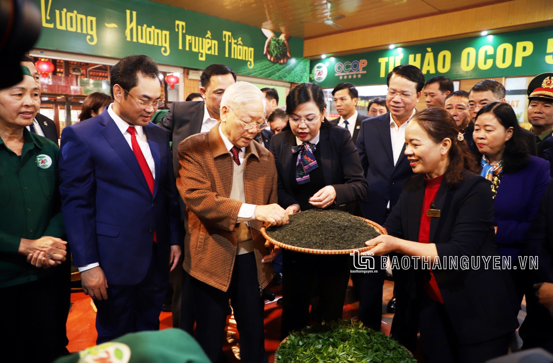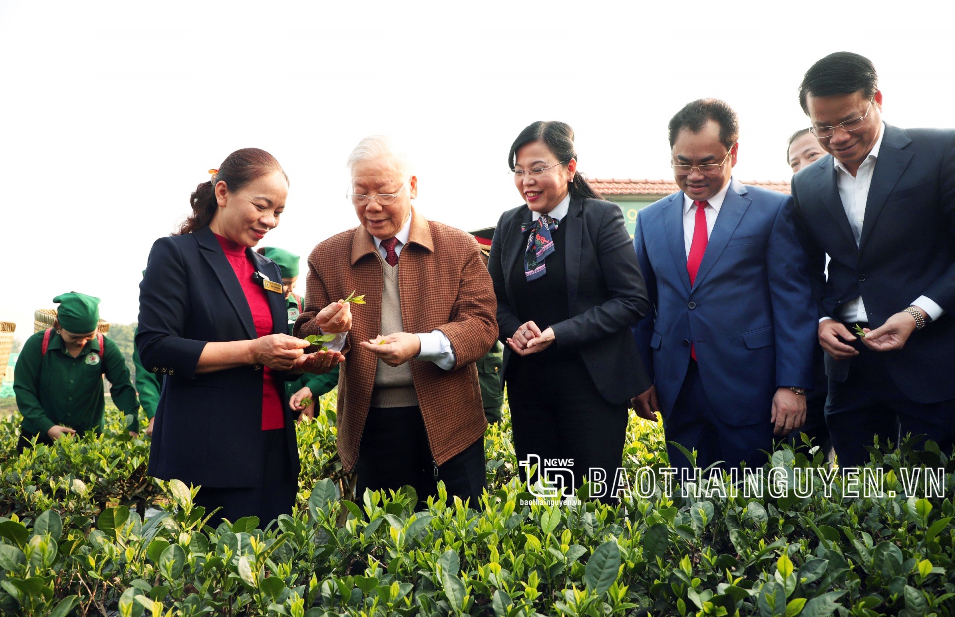 * Tiếp đó, Tổng Bí thư và Đoàn công tác đến thăm Hợp tác xã (HTX) chè Hảo Đạt, ở xã Tân Cương, TP. Thái Nguyên.