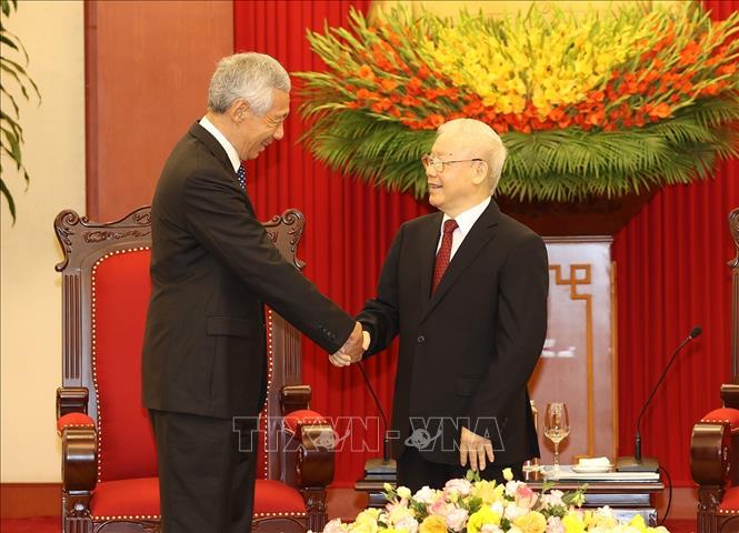 Tổng Bí thư Nguyễn Phú Trọng nhắc lại những kỷ niệm tốt đẹp, sự đón tiếp trọng thị và tình cảm của Chính phủ trong dịp Tổng Bí thư thăm Singapore trước đây; bày tỏ ấn tượng về sự phát triển của Singapore trở thành một quốc gia thịnh vượng và có uy tín cao trên trường quốc tế. Tổng Bí thư cũng bày tỏ vui mừng về sự phát triển của quan hệ hai nước, khẳng định sự coi trọng đối với việc tăng cường quan hệ với Singapore là nước láng giềng có vị trí quan trọng ở khu vực và quốc tế, có kinh nghiệm phát triển trong nhiều lĩnh vực.