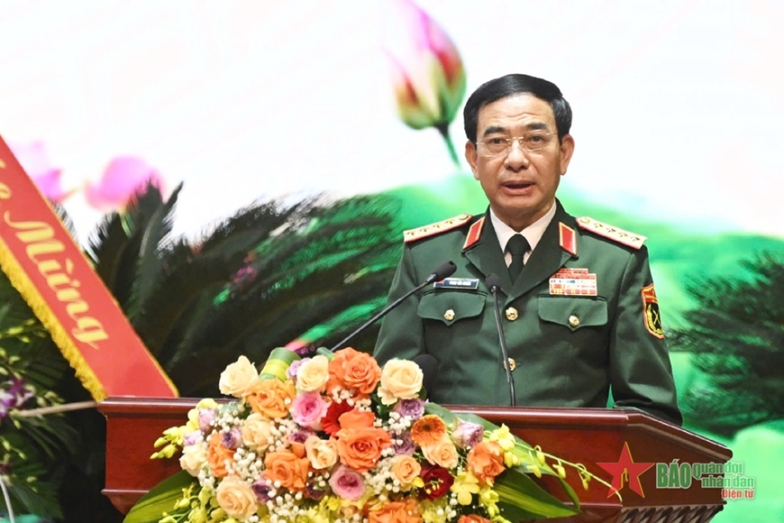 | Đại tướng Phan Văn Giang phát biểu chúc mừng đại hội. |