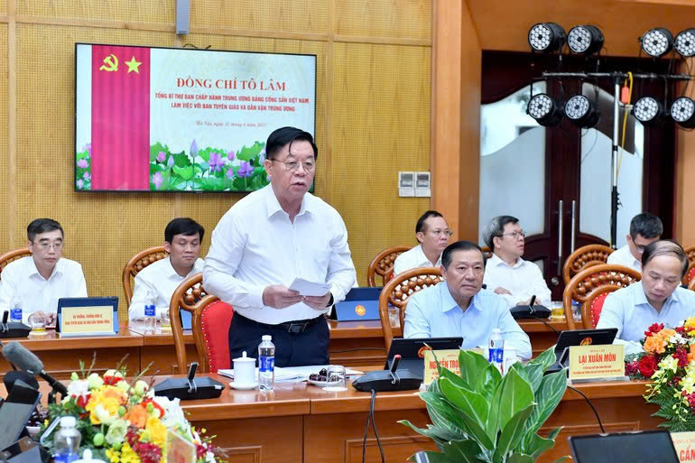 Chiều 11/6, tại Hà Nội, Tổng Bí thư Tô Lâm chủ trì làm việc với Ban Tuyên giáo và Dân vận Trung ương về tình hình thực hiện nhiệm vụ sau khi hợp nhất Ban Tuyên giáo Trung ương và Ban Dân vận Trung ương đến nay.