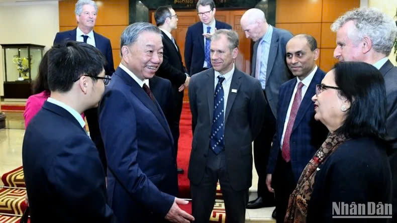 Tổng Bí thư Tô Lâm đề nghị các nhà khoa học, chuyên gia quốc tế tiếp tục hợp tác chặt chẽ và tích cực hỗ trợ Việt Nam trong các lĩnh vực: tư vấn chính sách phát triển khoa học công nghệ mới và lựa chọn hướng đầu tư phù hợp; hỗ trợ đào tạo nguồn nhân lực chất lượng cao phục vụ chiến lược phát triển công nghiệp bán dẫn và trí tuệ nhân tạo; thúc đẩy hình thành và phát triển các trung tâm đổi mới sáng tạo và tính toán năng suất cao và kết nối Việt Nam với các tập đoàn công nghệ hàng đầu và thị trường quốc tế.