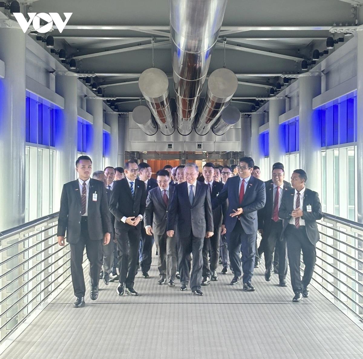 Cùng ngày, Tổng Bí thư Tô Lâm đã thăm Tập đoàn dầu khí quốc gia Malaysia Petronas - tập đoàn đứng đầu ASEAN về giá trị thương hiệu và nằm trong 10 công ty dầu khí hàng đầu thế giới. Tổng Bí thư Tô Lâm chúc mừng những thành tựu mà Petronas đã đạt được, đánh giá cao Tập đoàn Petronas đã đồng hành cùng Việt Nam ngay từ giai đoạn đầu đổi mới và hội nhập quốc tế cũng như thành quả hơn 30 năm hợp tác giữa Petronas và Tập đoàn Dầu khí Việt Nam (PVN).