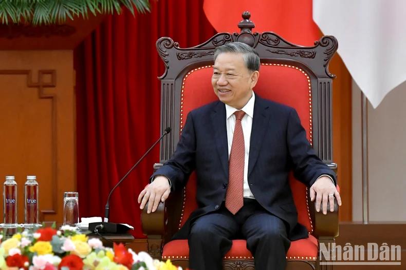 | Tổng Bí thư Tô Lâm phát biểu tại buổi tiếp. |