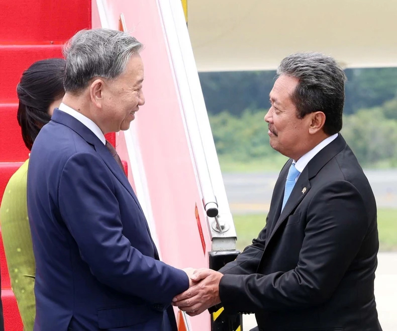 Đón Tổng Bí thư Tô Lâm và Phu nhân cùng Đoàn đại biểu cấp cao Việt Nam tại Sân bay quân sự Halim Perdanakusuma, về phía Indonesia có: Bộ trưởng Bộ Hàng Hải và Thủy sản Sakti Wahyu Trenggono; Đại sứ đặc mệnh toàn quyền Indonesia tại Việt Nam Denny Abdi và nhiều quan chức Indonesia. Phía Việt Nam có: Đại sứ đặc mệnh toàn quyền Việt Nam tại Indonesia Tạ Văn Thông và Phu nhân; Đại sứ, Trưởng Phái đoàn Đại diện Thường trực Việt Nam tại ASEAN Tôn Thị Ngọc Hương, cùng đông đảo cán bộ Đại sứ quán và Phái đoàn Việt Nam tại ASEAN.