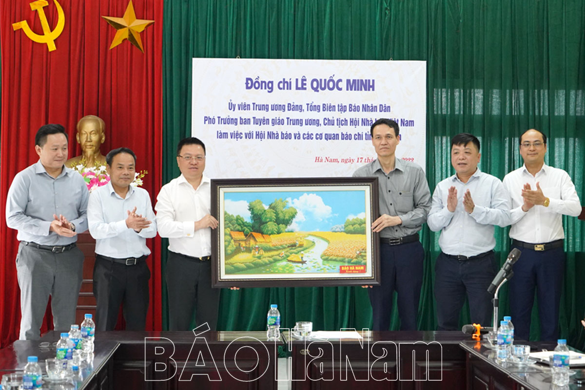 Chiều 17/5, Đoàn công tác của Báo Nhân Dân do đồng chí Lê Quốc Minh, Ủy viên Trung ương Đảng, Tổng Biên tập Báo Nhân Dân, Phó trưởng Ban Tuyên giáo Trung ương, Chủ tịch Hội Nhà báo Việt Nam làm trưởng đoàn đã về làm việc tại Hà Nam.