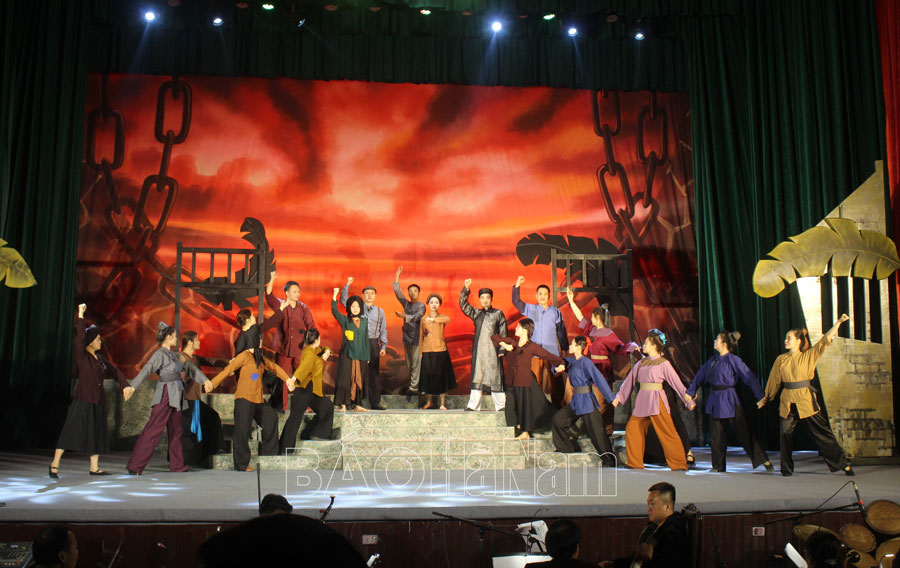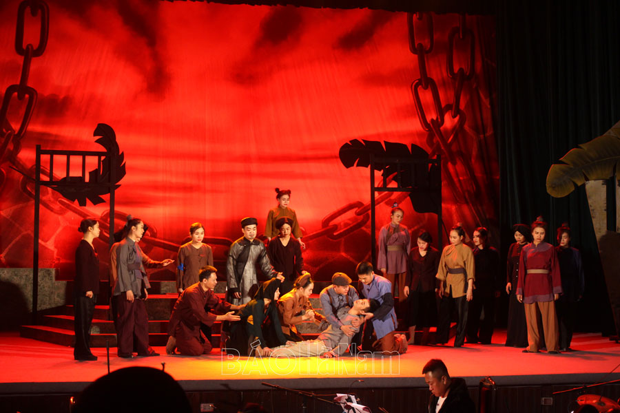 Hình ảnh người dân vùng lên đấu tranh được tái hiện trong vở diễn.Hình Nhà văn Nam Cao hy sinh vì sự nghiệp cách mạng.
