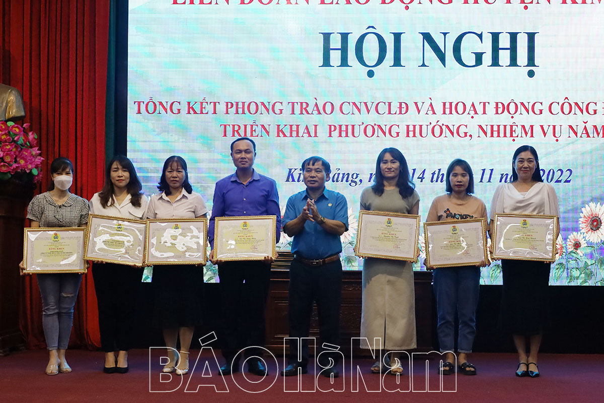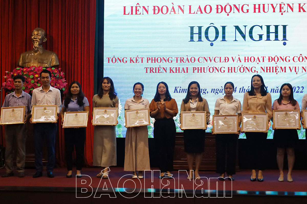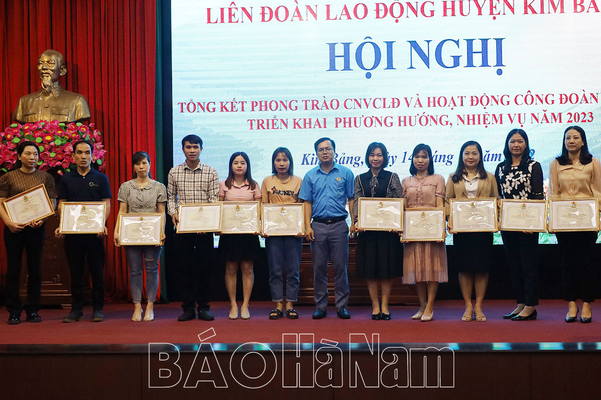 LĐLĐ huyện Kim Bảng là đơn vị được LĐLĐ tỉnh chọn làm đại hội điểm cấp huyện và tương đương nhiệm kỳ 2023-2028. Do đó, ngay từ cuối năm 2022, LĐLĐ huyện sẽ tập trung chỉ đạo Đại hội CĐCS xong trong quý I, để chuẩn bị các điều kiện tổ chức thành công Đại hội Công đoàn huyện lần thứ X, nhiệm kỳ 2023-2028 vào tháng 5. Làm tốt công tác chăm lo đời sống, bảo vệ quyền và lợi ích hợp pháp chính đáng của đoàn viên và NLĐ, nhất là trong dịp Tết nguyên đán 2023, Tháng Công nhân…