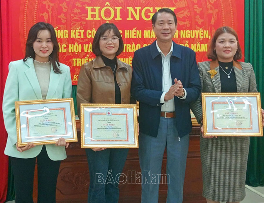 Hội Chữ thập đỏ huyện Kim Bảng khen thưởng các tập thể có thành tích xuất sắc trong công tác nhân đạo năm 2024.