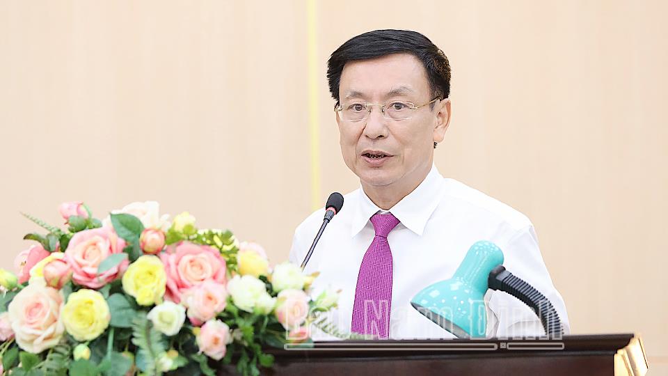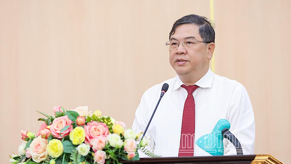 | Đồng chí Phạm Đình Nghị, Phó Bí thư Tỉnh ủy, Chủ tịch UBND tỉnh phát biểu tại hội nghị. |