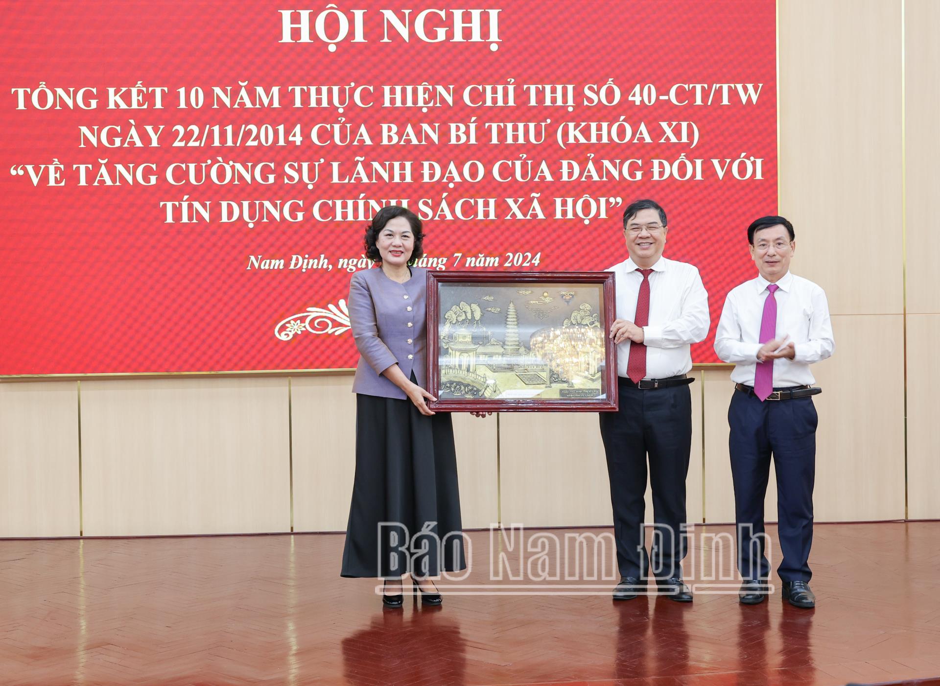 Chiều 16/7, Tỉnh uỷ Nam Định tổ chức hội nghị tổng kết 10 năm thực hiện Chỉ thị số 40-CT/TW ngày 22/11/2014 của Ban Bí thư (khoá XI) về tăng cường sự lãnh đạo của Đảng đối với công tác tín dụng chính sách xã hội (TDCSXH) trên địa bàn tỉnh.
