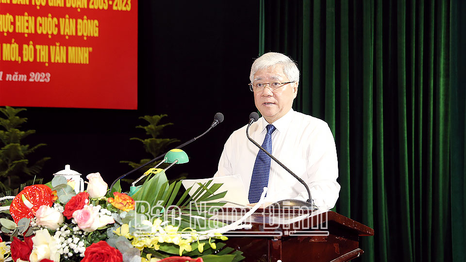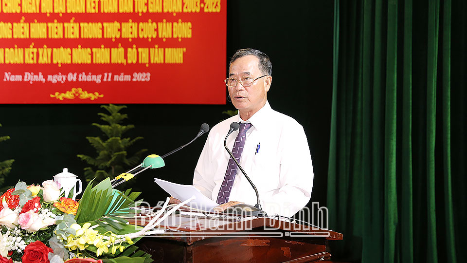 Phát biểu chỉ đạo tại hội nghị, đồng chí Chủ tịch Ủy ban Trung ương MTTQ Việt Nam Đỗ Văn Chiến và đồng chí Bí thư Tỉnh ủy Phạm Gia Túc đã biểu dương, ghi nhận những kết quả, thành tích mà Mặt trận các cấp trong tỉnh đã đạt được trong những năm qua; biểu dương những thành tích nổi bật của 107 điển hình tiên tiến trong thực hiện Cuộc vận động “Toàn dân đoàn kết xây dựng NTM, đô thị văn minh”.