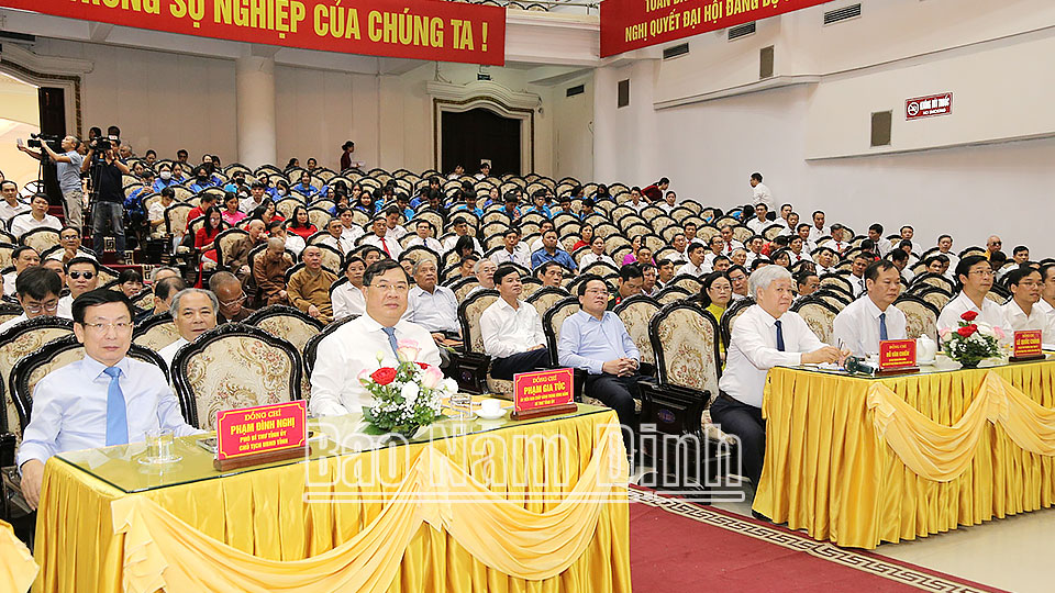 | Các đồng chí: Đỗ Văn Chiến, Bí thư Trung ương Đảng, Chủ tịch Ủy ban Trung ương MTTQ Việt Nam; Phạm Gia Túc, Ủy viên BCH Trung ương Đảng, Bí thư Tỉnh ủy; Lê Quốc Chỉnh, Phó Bí thư Thường trực Tỉnh ủy, Chủ tịch HĐND tỉnh, Trưởng đoàn Đoàn đại biểu Quốc hội tỉnh; Phạm Đình Nghị, Phó Bí thư Tỉnh ủy, Chủ tịch UBND tỉnh dự hội nghị. |