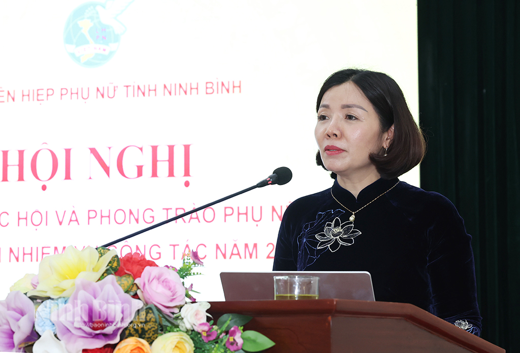 Hội Phụ nữ các cấp tiếp tục đồng hành, hỗ trợ phụ nữ phát triển kinh tế bền vững; tích cực tham gia các chương trình mục tiêu quốc gia, các cuộc vận động, phong trào thi đua yêu nước “Xây dựng người Phụ nữ Ninh Bình thời đại mới”, “Xây dựng gia đình 5 có, 3 sạch, 3 an” gắn với việc học tập và làm theo tư tưởng, đạo đức, phong cách Hồ Chí Minh; đẩy mạnh công tác chăm lo đời sống vật chất, tinh thần cho phụ nữ, trẻ em; góp phần xây dựng gia đình hạnh phúc, tiến bộ, văn minh.
