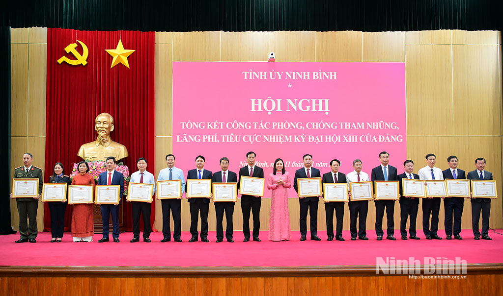 Tại hội nghị, 10 tập thể và 20 cá nhân đã được Chủ tịch UBND tỉnh tặng Bằng khen vì có thành tích xuất sắc trong công tác phòng, chống tham nhũng, lãng phí, tiêu cực trong nhiệm kỳ Đại hội XIII của Đảng.