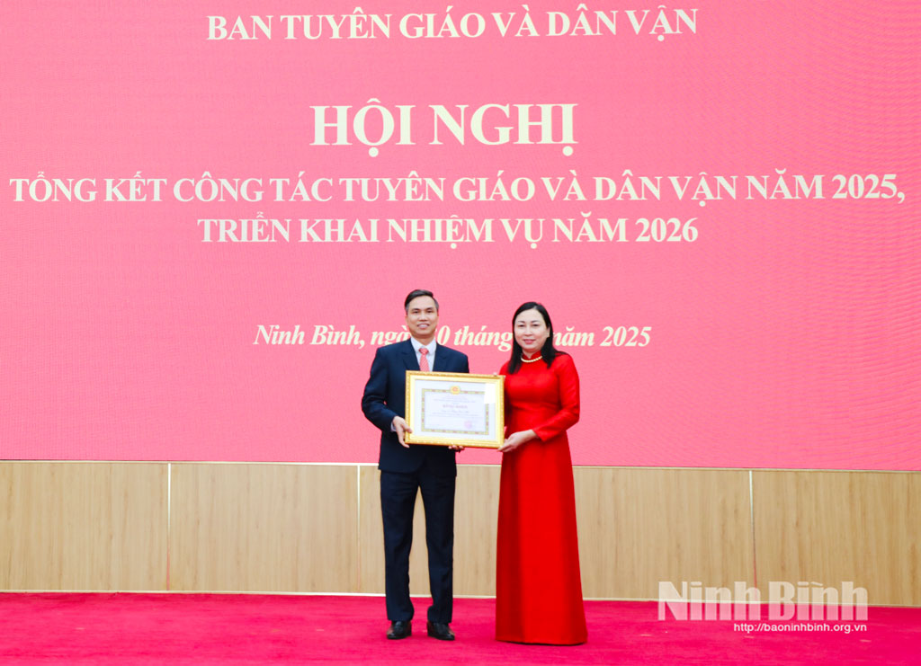 Năm 2025, với sự quan tâm của các cấp ủy, tổ chức đảng, sự phối hợp chặt chẽ của các ngành, các cấp; sự nỗ lực, cố gắng vượt qua khó khăn, thách thức của đội ngũ cán bộ, công chức, người lao động trong toàn ngành, công tác tuyên giáo và dân vận trên địa bàn tỉnh đã bám sát nhiệm vụ chính trị, thực hiện có chất lượng, hiệu quả chương trình, kế hoạch của Tỉnh ủy trên các lĩnh vực công tác tuyên giáo, dân vận và các chương trình trọng tâm công tác lớn trong năm 2025. Đặc biệt, Ban Tuyên giáo và Dân vận Tỉnh ủy đã tập trung tham mưu cho Tỉnh ủy, Ban Thường vụ Tỉnh ủy lãnh đạo, chỉ đạo và tổ chức thực hiện nghiêm túc, sáng tạo, hiệu quả các nghị quyết, chỉ thị, kết luận, quy định của Ban Chấp hành Trung ương Đảng, Bộ Chính trị, Ban Bí thư khóa XIII. Tham mưu triển khai các nhiệm vụ phục vụ Đại hội Đảng bộ tỉnh Ninh Bình lần thứ I, nhiệm kỳ 2025-2030. Tiếp tục đổi mới, nâng cao chất lượng học tập chủ nghĩa Mác - Lênin, tư tưởng Hồ Chí Minh, quan điểm, đường lối của Đảng, chính sách, pháp luật của Nhà nước. Chủ động triển khai thực hiện đồng bộ những giải pháp phòng ngừa, đấu tranh, phê phán nhằm ngăn chặn, đẩy lùi sự suy thoái về tư tưởng, chính trị, đạo đức, lối sống, những biểu hiện “tự diễn biến”, “tự chuyển hoá” trong nội bộ. Tổ chức tuyên truyền các nhiệm vụ chính trị, các sự kiện lớn, nổi bật của quê hương, đất nước, xứng tầm, tạo sức lan tỏa sâu rộng trong các tầng lớp nhân dân.