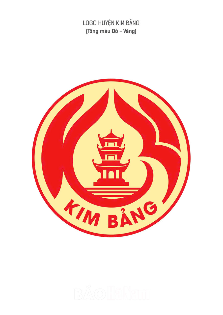 Tác phẩm đạt giải Nhất hội tụ đầy đủ những hình ảnh tiêu biểu của huyện Kim Bảng: Tổng thể của biểu trưng thể hiện cách điệu hai chữ KB (Kim Bảng) tạo hình bông hoa sen bung nở, trung tâm vị trí logo là chùa Ngọc - biểu tượng có tính đại diện cao nhất, toát lên hơi thở, văn hoá, bản sắc ngàn đời của huyện Kim Bảng cùng sự liên kết của những nét đồ hoạ sọc ngang dưới chân chùa Ngọc chỉ thị cho mặt nước bình yên của Hồ Tam Chúc. Tất cả tạo nên ý nghĩa “Kim Bảng là vùng đất Phật, là danh thắng có vẻ đẹp tạo tác từ thiên nhiên hùng vỹ, quy mô mà bất kỳ ai khi đến Kim Bảng nhất định phải ghé thăm. Hoa sen bung nở cũng như chính nền kinh tế huyện Kim Bảng không ngừng tăng tốc và phát triển liên hồi, hướng đến trở thành một đơn vị vững mạnh, năng động, có đời sống văn minh, hiện đại của tỉnh Hà Nam”.