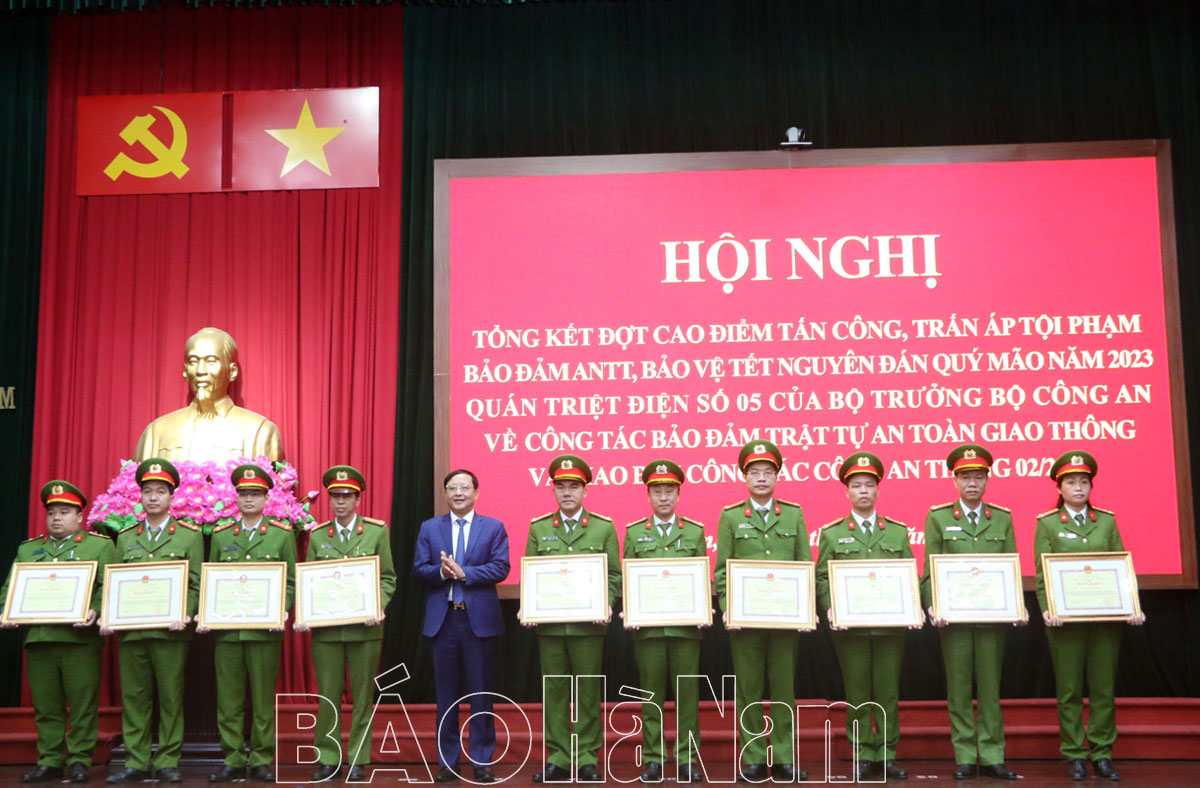 Nhân dịp này, nhiều tập thể, cá nhân đã được Bộ trưởng Bộ Công an, UBND tỉnh, Giám đốc Công an tỉnh khen thưởng vì có thành tích xuất sắc trong công tác đảm bảo ANTT, bảo vệ tuyệt đối an toàn đoàn các đồng chí lãnh đạo Đảng, Nhà nước, các lễ hội đầu Xuân và đợt cao điểm tấn công trấn áp tội phạm, bảo đảm ANTT Tết Nguyên đán Qúy Mão năm 2023./.