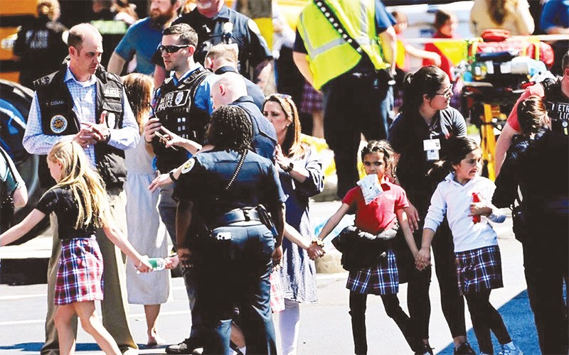 | Sơ tán học sinh Trường tiểu học Convenant sau vụ xả súng. (Ảnh REUTERS) |