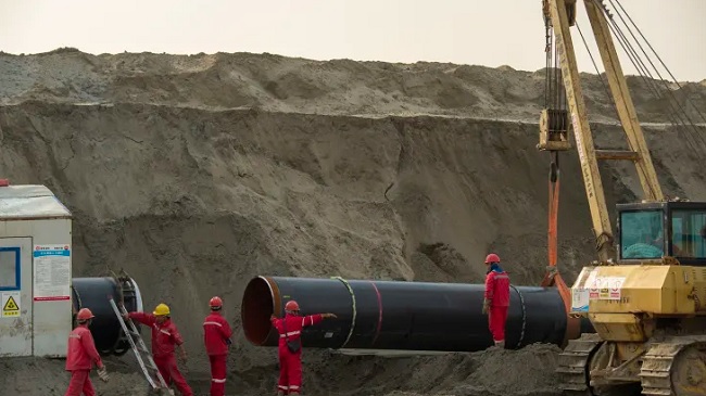 Xây dựng dự án đường ống dẫn khí đốt tự nhiên Trung - Nga tại tỉnh Giang Tô tháng 3/2022.