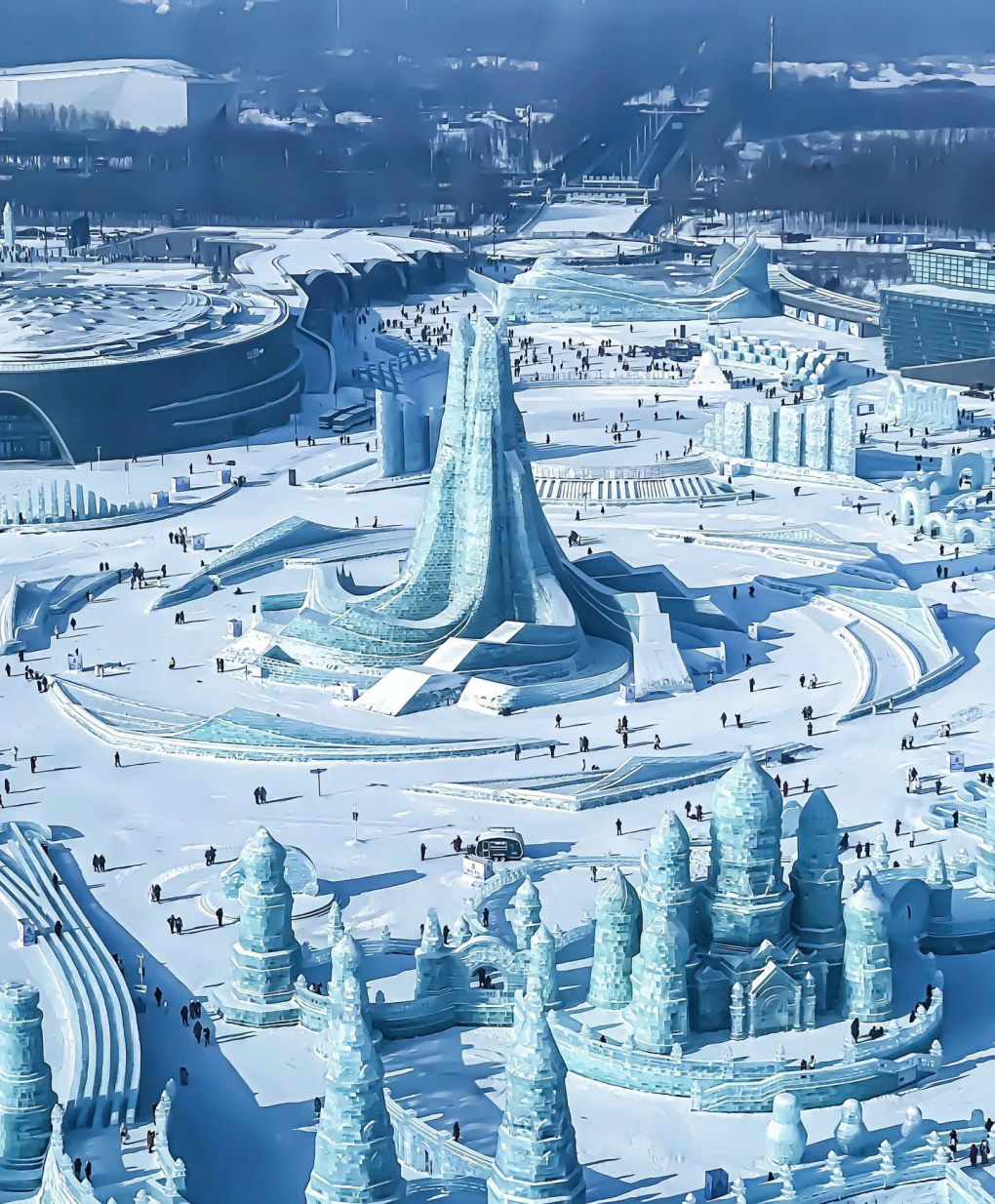 Các công trình điêu khắc băng tại Cáp Nhĩ Tân. Ảnh: Douyin