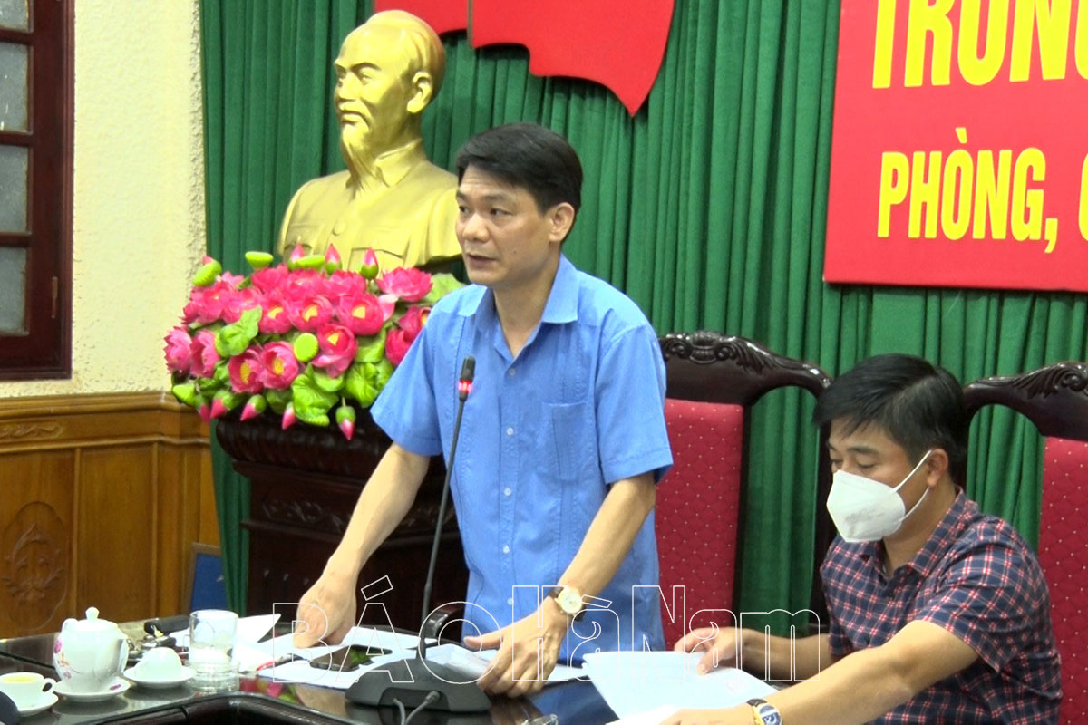 Đồng chí Nguyễn Đức Toàn, Thường vụ Tỉnh ủy, Bí thư thành ủy Phủ Lý, Trưởng BCĐ PCD Covid–19 TP phát biểu chỉ đạo tại hội nghị.