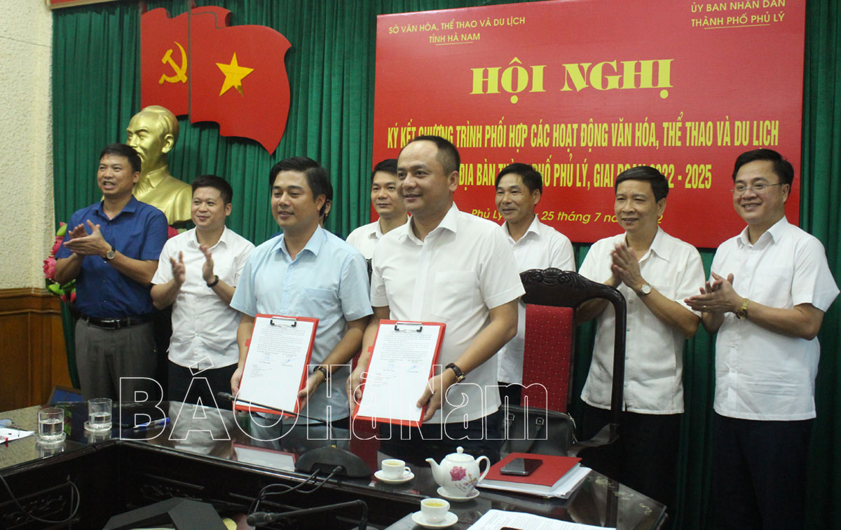 Chiều 25/7, UBND thành phố Phủ Lý đã tổ chức Chương trình ký kết với Sở Văn hóa, Thể thao và Du lịch (VH,TT&DL) về việc tổ chức các hoạt động VH,TT&DL trên địa bàn thành phố giai đoạn 2022 – 2025.