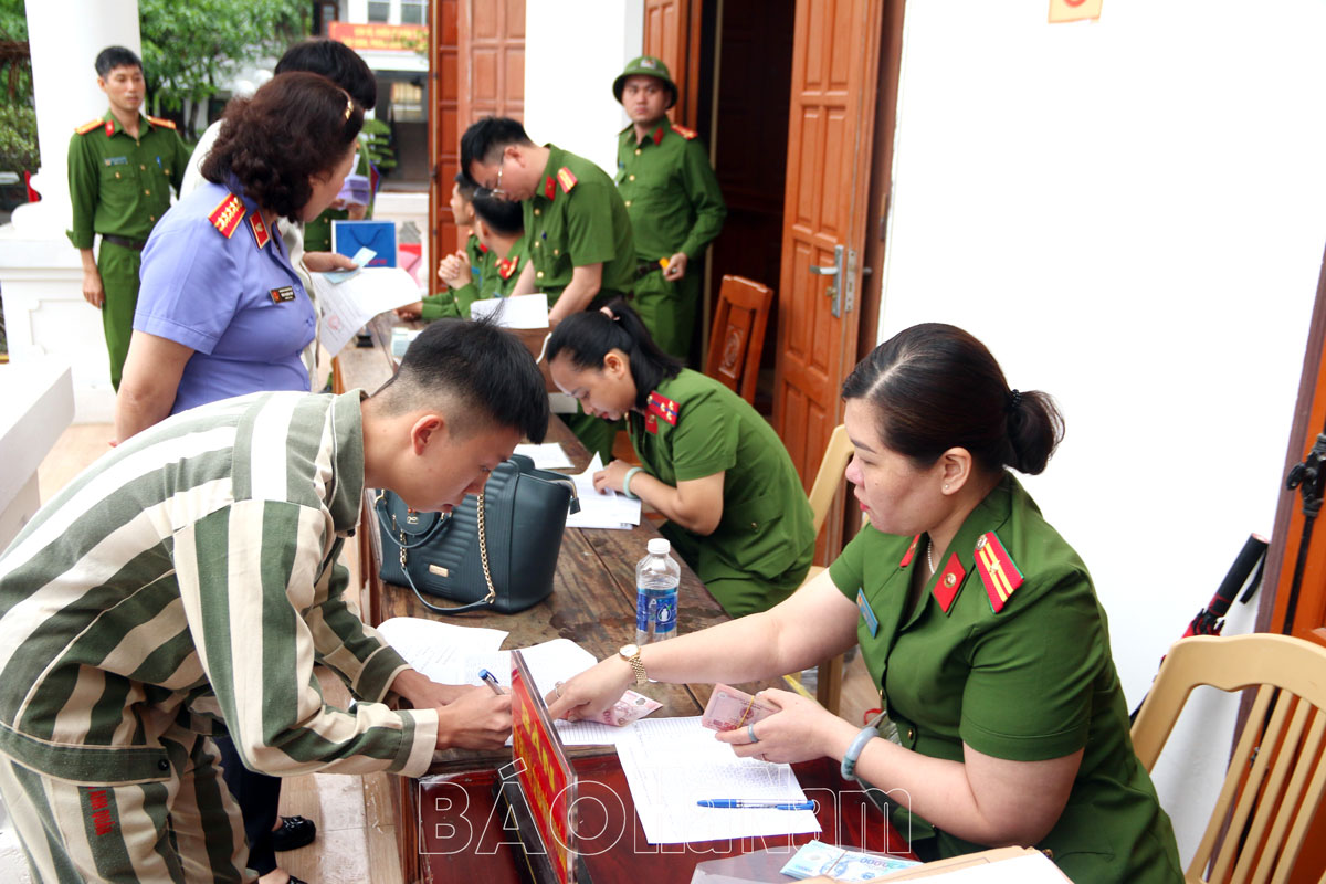 Cán bộ Trại giam Nam Hà làm các thủ tục cho các phạm nhân được đặc xá đợt này.