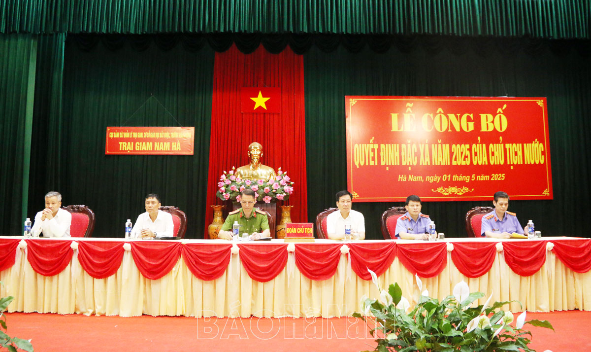 Sáng 1/5, Trại giam Nam Hà thuộc Cục Cảnh sát quản lý trại giam, cơ sở giáo dục bắt buộc, trường giáo dưỡng (C10) - Bộ Công an (đóng trên địa bàn phường Tân Sơn, Kim Bảng) tổ chức công bố Quyết định đặc xá của Chủ tịch nước năm 2025 nhân dịp kỷ niệm 50 năm Ngày Giải phóng miền Nam, thống nhất đất nước (30/4/1975- 30/4/2025) và Ngày Quốc tế lao động 1/5 cho các phạm nhân đang chấp hành án tại trại.