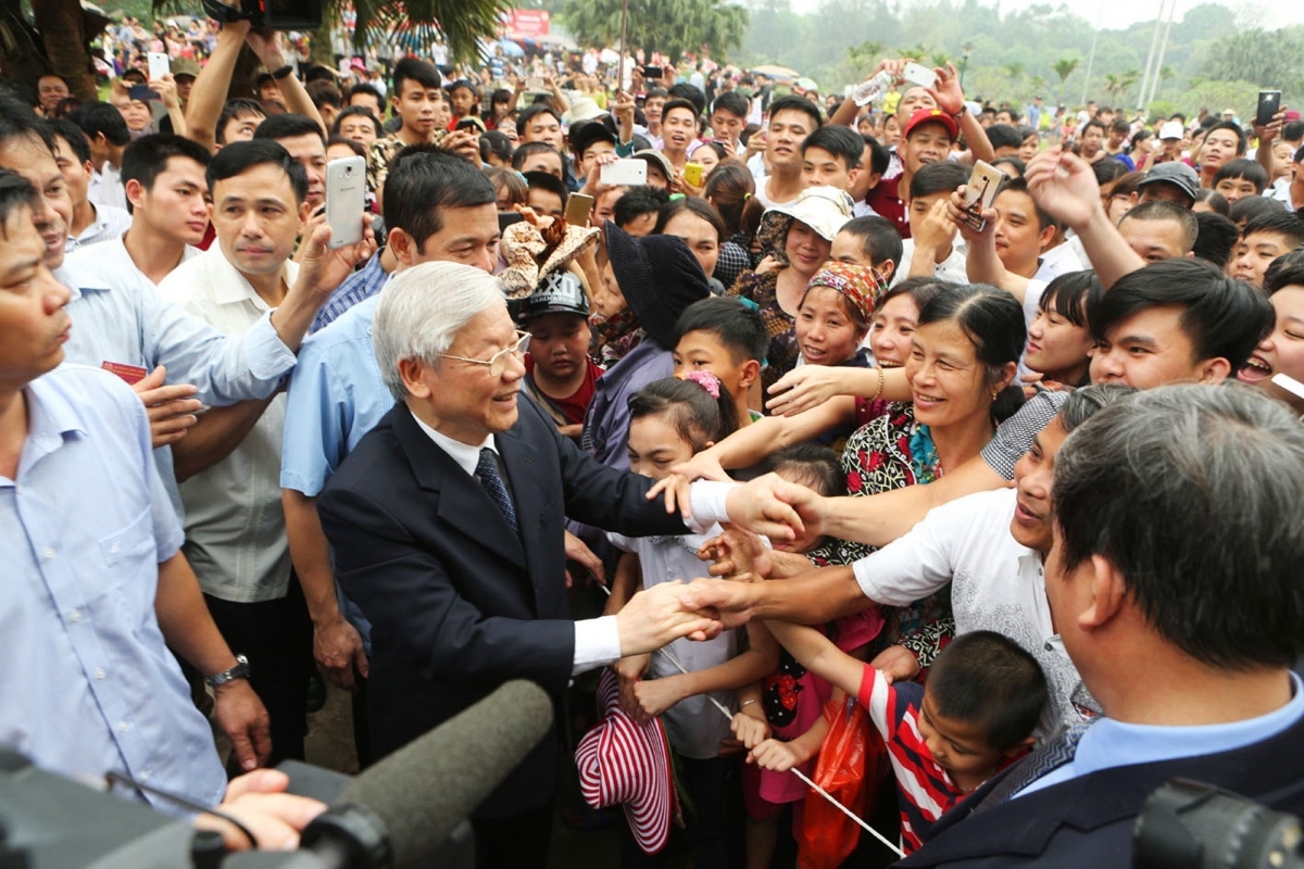 | Tổng Bí thư Nguyễn Phú Trọng trong một chuyến công tác cơ sở. Ảnh: TTXVN |