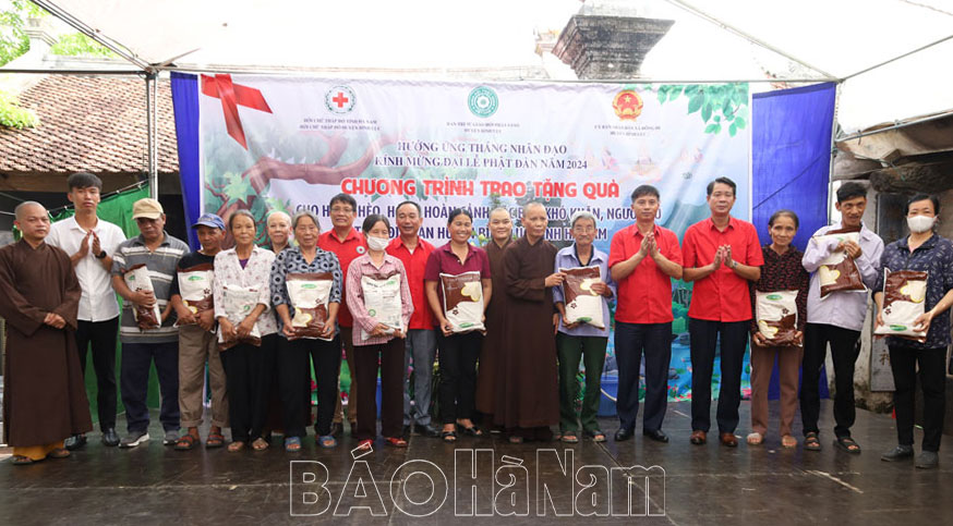 Sáng 12/5, hưởng ứng Tháng Nhân đạo năm 2024, Hội Chữ thập đỏ tỉnh phối hợp với Đại đức Thích Thiện Tâm, Phó Ban Từ thiện Giáo hội Phật giáo huyện Bình Lục trụ trì chùa Hoa Lâm (xã Đồng Du) tổ chức chương trình trao quà cho hộ nghèo, hộ có hoàn cảnh đặc biệt khó khăn, người khuyết tật trên địa bàn huyện.
