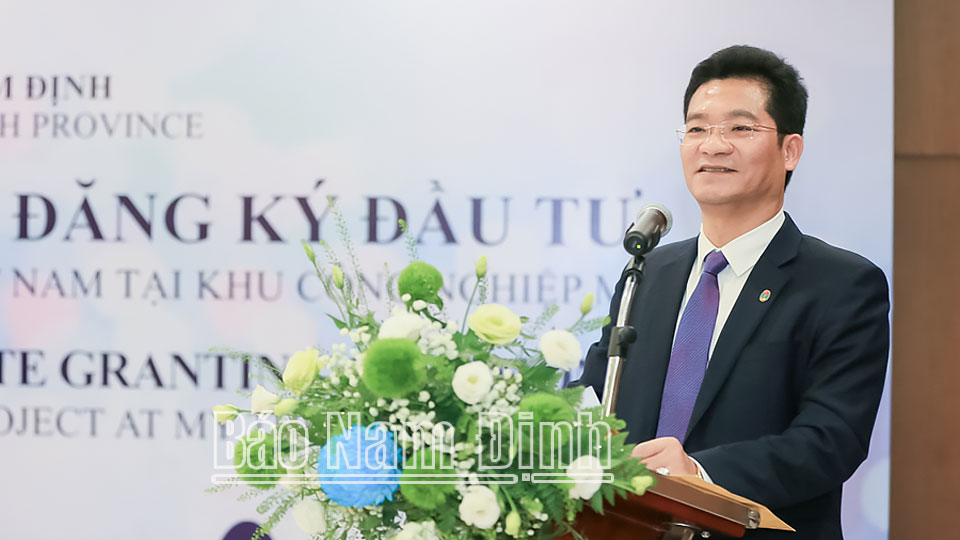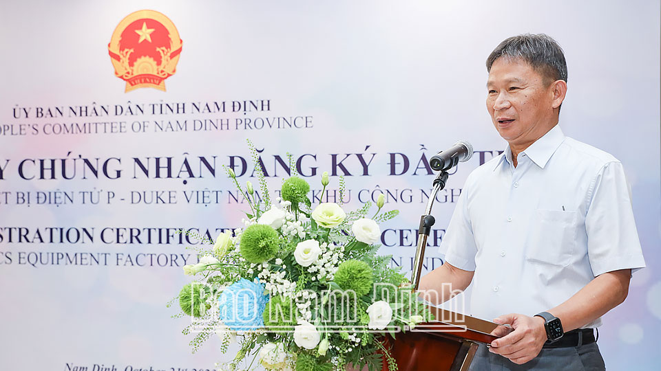 Phát biểu tại buổi lễ, đồng chí Phó Chủ tịch Thường trực UBND tỉnh Trần Anh Dũng khẳng định: Sau một thời gian tìm hiểu đầu tư tại Việt Nam, đến nay Công ty P-Duke đã lựa chọn KCN Mỹ Thuận của tỉnh Nam Định là địa điểm để phát triển dự án Nhà máy sản xuất bộ nguồn P-Duke Việt Nam. Đây là dự án đánh dấu sự tiếp nối những kết quả tích cực trong thu hút đầu tư của tỉnh Nam Định, đặc biệt trong các lĩnh vực công nghệ cao, thân thiện với môi trường. Quá trình tìm hiểu đầu tư, trao đổi thông tin, đàm phán giữa Công ty TNHH P-Duke Technology và Công ty Cổ phần xây dựng hạ tầng Đại Phong đã được các bên làm việc rất tích cực, cụ thể trên cơ sở thiện chí với sự chỉ đạo sát sao và tạo điệu kiện tối đa của lãnh đạo tỉnh Nam Định. Đến nay Công ty P-Duke đã được trao Giấy chứng nhận đăng ký đầu tư. Về phía Nam Định, tỉnh cam kết sẽ tạo mọi điều kiện thuận lợi nhất, đồng hành cùng nhà đầu tư trong việc giải quyết những khó khăn, vướng mắc liên quan đến thủ tục pháp lý trong quá trình nhà đầu tư triển khai xây dựng, khai thác và vận hành dự án thông qua cơ quan đầu mối là Ban Quản lý các KCN tỉnh. Đồng chí Phó Chủ tịch Thường trực UBND tỉnh yêu cầu Ban Quản lý các KCN tỉnh, các sở, ngành, địa phương liên quan tập trung hỗ trợ tối đa cho Công ty TNHH P-Duke Technology và Công ty Cổ phần xây dựng hạ tầng Đại Phong hoàn thiện các thủ tục về đất đai, đầu tư, xây dựng, môi trường... với phương châm "thành công của nhà đầu tư góp phần vào thành công chung của tỉnh". Nhân dịp này, đồng chí Phó Chủ tịch Thường trực UBND tỉnh chào mừng Công ty TNHH P-Duke Technology đến với Nam Định và khẳng định từ hôm nay tỉnh coi các thành viên của Công ty là công dân Nam Định.