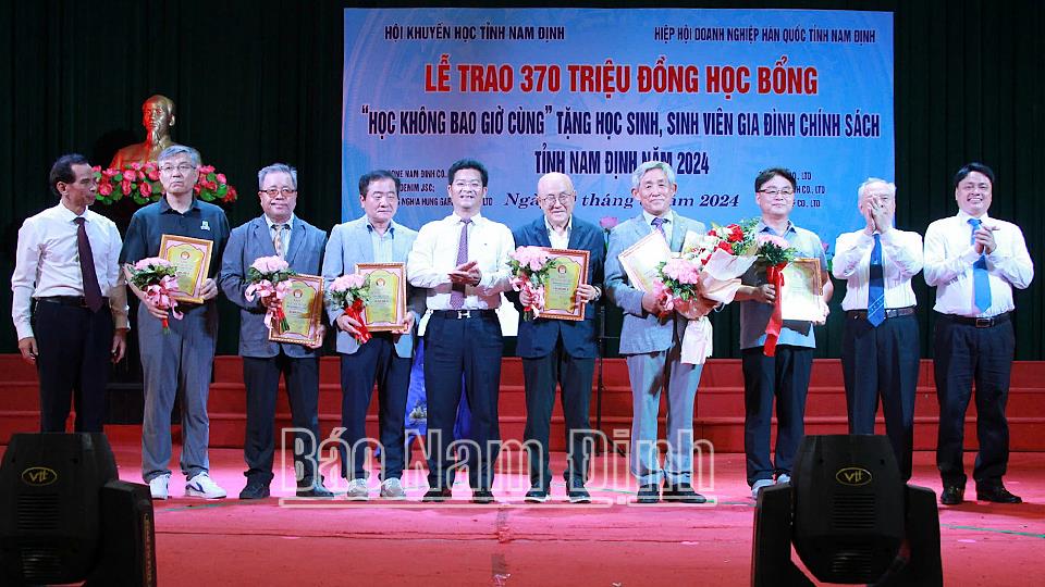 Năm 2024 trong điều kiện còn nhiều khó khăn song các doanh nghiệp Hàn Quốc tại Nam Định vẫn ổn định và phát triển, tiếp tục vào đầu tư và mở rộng sản xuất. Toàn tỉnh có 31 công ty của Hàn Quốc thu hút gần 30 nghìn lao động vào làm việc. Đặc biệt với sự chung tay vì sự phát triển cộng đồng, từ năm 2017 đến nay, Hiệp hội Doanh nghiệp Hàn Quốc tại tỉnh đã trao tặng 822 suất học bổng cho học sinh, sinh viên vượt khó hiếu học trị giá 1 tỷ 690 triệu đồng. Nhân dịp trước thềm năm học mới 2024-2025, Hiệp hội Doanh nghiệp Hàn Quốc tại Nam Định tặng 185 suất học bổng, mỗi suất trị giá 2 triệu đồng. Những em được nhận học bổng là học sinh, sinh viên vượt khó học tốt; trong đó có 110 em có ông, bà, bố là liệt sĩ, thương binh, bệnh binh, nạn nhân bị nhiễm chất độc da cam/đi-ô-xin. Nhiều em có ông, bà được phong tặng, truy tặng Anh hùng Lực lượng vũ trang nhân dân trong các cuộc kháng chiến bảo vệ Tổ quốc; có em hoàn cảnh rất khó khăn nhưng đã vươn lên đạt thành tích cao trong học tập và rèn luyện. Những suất học bổng là món quà thiết thực tri ân những người đã từng tham gia chiến đấu, hy sinh trong các cuộc kháng chiến bảo vệ Tổ quốc, đồng thời nâng đỡ, động viên khích lệ học sinh, sinh viên là con cháu của các gia đình tiếp tục phấn đấu vươn lên trong học tập.