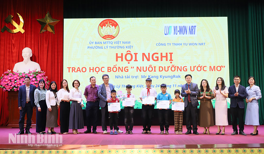 Chiều 24/11, Ủy ban MTTQ Việt Nam phường Lý Thường Kiệt phối hợp với Công ty TNHH Yu Won NRT (Khu Công nghiệp Đồng Văn I) tổ chức trao học bổng “Nuôi dưỡng ước mơ” cho các em học sinh mồ côi có hoàn cảnh khó khăn vươn lên trong học tập.
