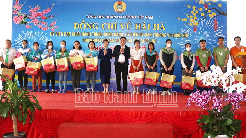 Nhân dịp Tết Nguyên đán Giáp Thìn 2024, ngày 19-1, đồng chí Vũ Hải Hà, Ủy viên BCH Trung ương Đảng, Chủ nhiệm Ủy ban Đối ngoại Quốc hội đã thăm, chúc Tết và tặng quà cho công nhân lao động có hoàn cảnh khó khăn tại Công ty TNHH Maxport Limited (thành phố Nam Định). Dự buổi gặp mặt có các đồng chí: Trần Minh Thắng, Ủy viên Ban TVTU, Trưởng Ban Dân vận Tỉnh ủy; Nguyễn Hải Dũng, TUV, Phó Trưởng đoàn chuyên trách Đoàn đại biểu Quốc hội tỉnh; lãnh đạo LĐLĐ tỉnh và thành phố Nam Định.
