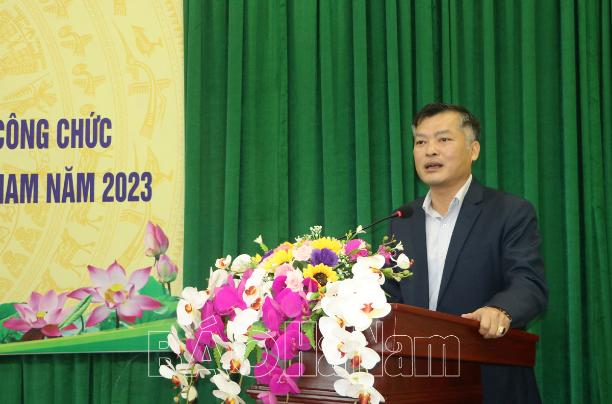 Tại hội nghị, đại diện Sở Nội vụ đã công bố Quyết định số 198/QĐ-UBND ngày 06/02/2024 của UBND tỉnh Hà Nam về việc phê duyệt kết quả thi tuyển và công nhận danh sách trúng tuyển kỳ thi tuyển công chức hành chính tỉnh Hà Nam năm 2023. Theo đó có 35 thí sinh đã trúng tuyển vào 15 đơn vị, sở, ngành của tỉnh(trong đó 11 sở, ngành và các cơ quan chuyên môn của 4 huyện, thị xã).