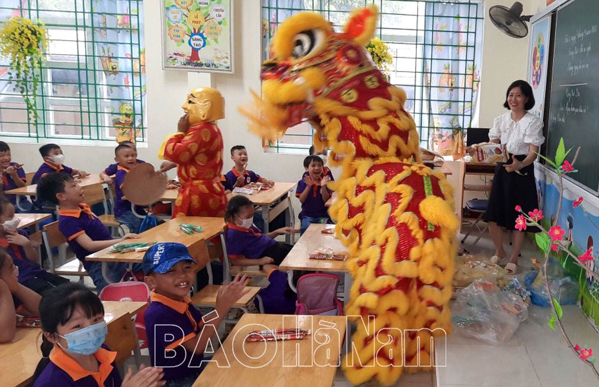 Những chú lân, chú Tễu rực rỡ sắc màu mang tới sự thích thú cho các em thiếu nhi khi bất ngờ xuất hiện trong lớp học