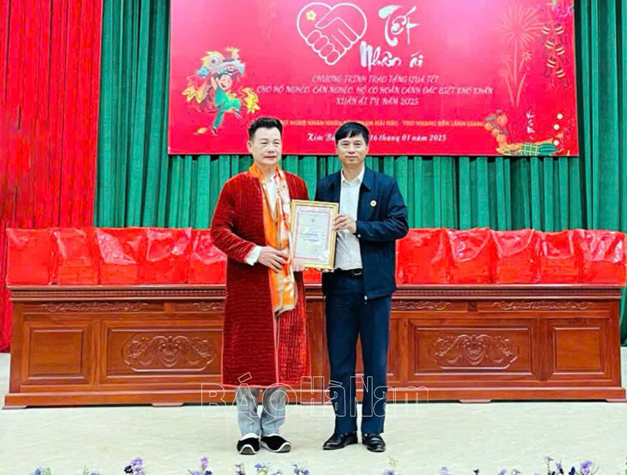 Nhân dịp đón Xuân Ất Tỵ 2025, Nghệ nhân Nhân dân Phạm Hải Hậu, Thủ nhang Đền Lảnh Giang (thị xã Duy Tiên) đã trao tặng 200 suất quà Tết cho các hộ nghèo, hộ có hoàn cảnh đặc biệt khó khăn tại thị xã Kim Bảng và các huyện: Thanh Liêm, Lý Nhân, Bình Lục, mỗi suất quà trị giá 500.000 đồng, tổng giá trị 100 triệu đồng.