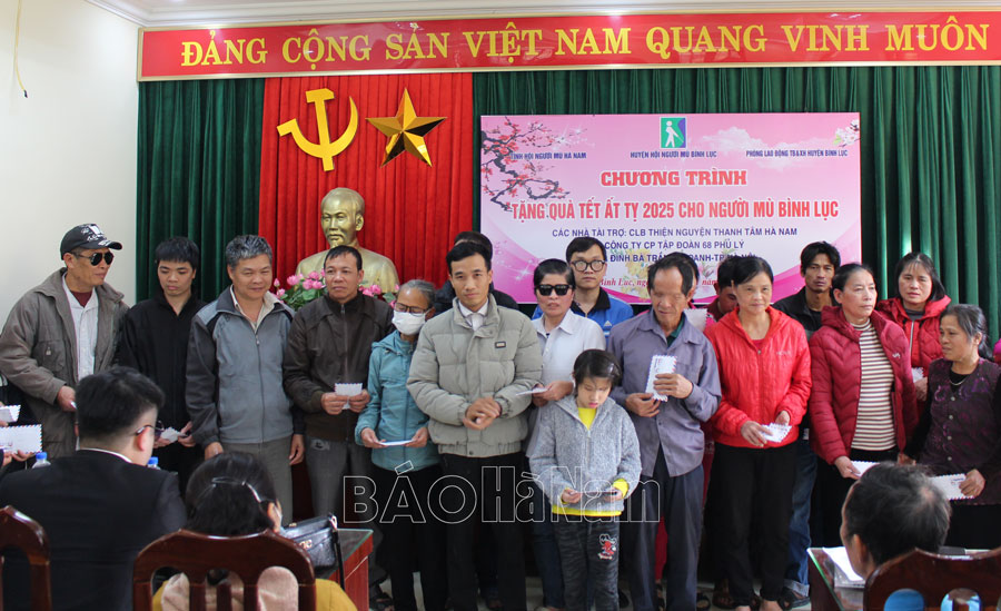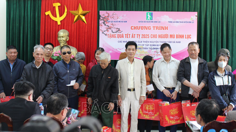 Nhân dịp Tết Nguyên đán Ất Tỵ 2025, chiều 21/1, Hội người mù huyện Bình Lục vừa phối hợp với các nhà tài trợ tổ chức tặng quà Tết cho hội viên Hội Người mù trên địa bàn huyện.