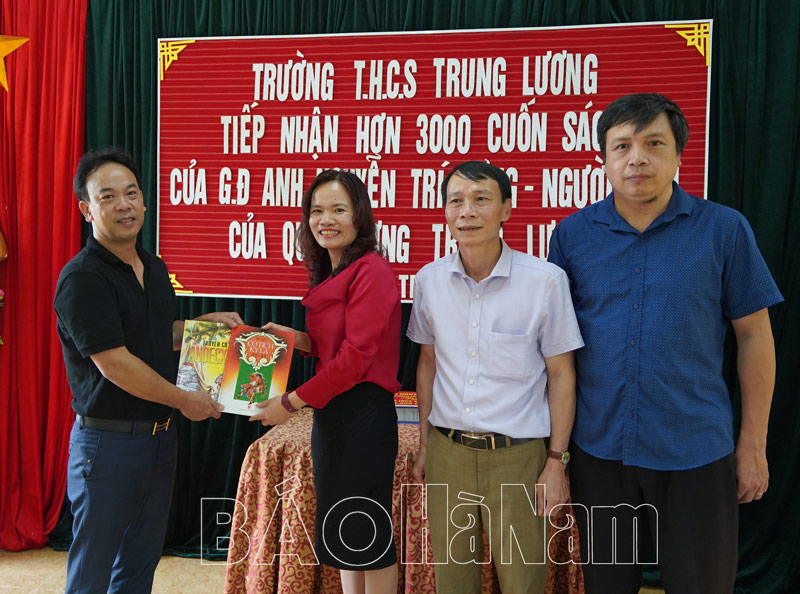 Người tặng sách là ông Nguyễn Trí Dũng, quê xã Trịnh Xá, thành phố Phủ Lý (trước đây thuộc huyện Bình Lục) đang sống và làm việc tại Hà Nội. Với mong muốn góp một phần nhỏ bé vào việc xây dựng các thư viện trường học, khơi dậy văn hóc đọc trong học sinh các nhà trường, hình thành nền móng tri thức cho các em, nhiều năm qua, ông Nguyễn Trí Dũng đã lặng lẽ trao tặng hạng vạn cuốn sách đến hàng chục trường học trên địa bàn huyện Bình Lục như: Trường THCS Tràng An, Trường Tiểu học Đồng Du, Trường Tiểu học Bình Nghĩa, Trường Tiểu học và THCS Trung Lương, Trường THCS Nguyễn Khuyến, Trường liên cấp Tiểu học và THCS Đồn Xá, Trường Tiểu học Bình Mỹ A và B… với số tiền lên tới hàng trăm triệu đồng.