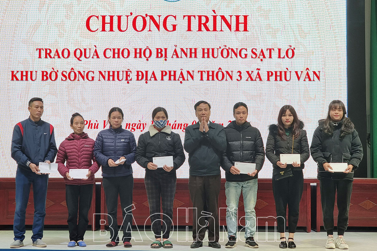 Sáng 17/1, Hội Chữ thập đỏ tỉnh và Hội Chữ thập đỏ thành phố Phủ Lý phối hợp tổ chức trao quà cho 7 hộ gia đình bị ảnh hưởng sạt lở khu bờ sông Nhuệ tại thôn 3 xã Phù Vân.