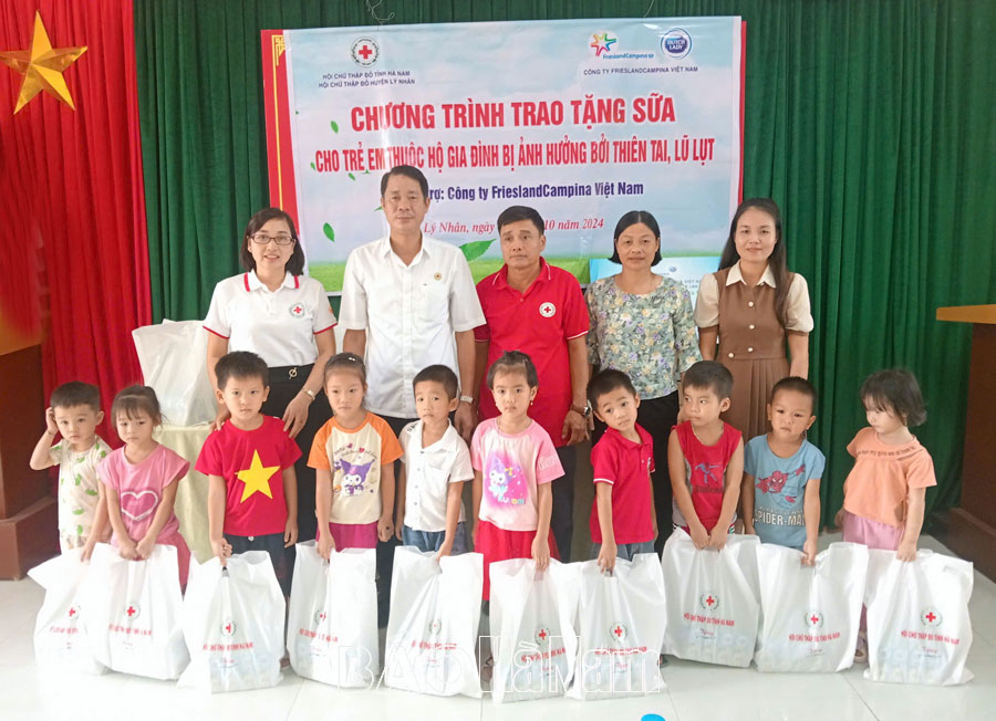 Hội Chữ thập đỏ (CTĐ) tỉnh vừa phối hợp với Hội CTĐ huyện Lý Nhân, Công ty sữa cô gái Hà Lan (Tập đoàn FrieslandCampina Việt Nam) tổ chức trao tặng sữa cho trẻ em thuộc hộ nghèo, hộ bị ảnh hưởng thiên tai, bão lũ tại 4 trường mầm non: Chính Lý, Chân Lý, Nhân Thịnh, Phú Phúc (Lý Nhân).
